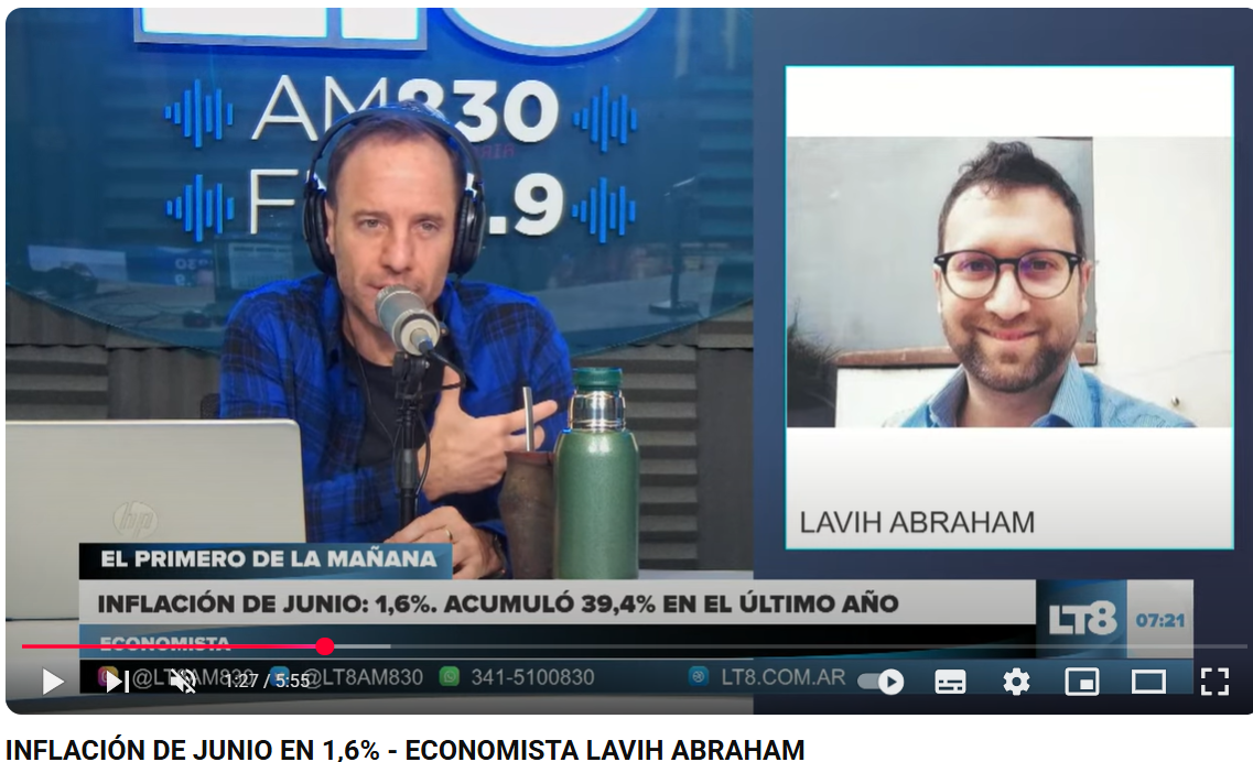 En junio los precios subieron 1.6% y el acumulado interanual se ubicó por debajo del 40%. Para el economista de la UNR Lavih Abraham los valores dejaron de subir por la política fiscal y monetaria del gobierno. Y por el techo que le fijó el propio consumo por las paritarias que no terminan de repuntar