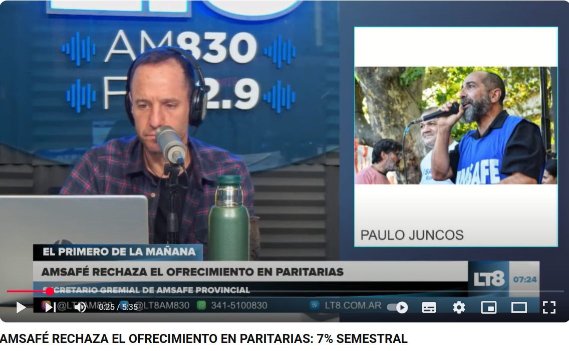 En declaraciones a LT8, el dirigente de Amsafé sostuvo: “Fuimos a la reunión paritaria de ayer, haciendo un balance de lo que fue el primer semestre. Expusimos que los números oficiales indicaron que la inflación del primer semestre fue del 16,4 por ciento y el aumento que tuvimos fue del 13 por ciento. Entonces, la discusión ya de por sí arrancó con un desfasaje de 3 o 4 puntos de pérdida salarial. Pensábamos que el gobierno tendría una política para recuperar lo perdido en el primer semestre, sin hablar lo que perdimos en nuestro poder adquisitivo el año pasado, que fue del 23 por ciento”.