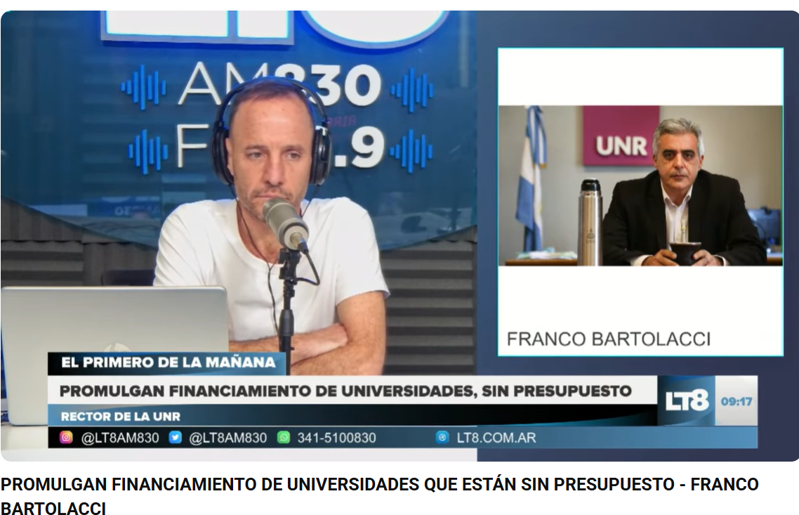 El titular de la Universidad Nacional de Rosario, Franco Bartolacci, cuestionó con dureza la decisión del gobierno nacional de promulgar, pero dejar en suspenso la ley aprobado por el Congreso El Gobierno promulgó  la ley de financiamiento universitario, pero con la particularidad de dejarla en suspenso a la espera de que el Congreso justifique o explique la fuente de financiamiento en el marco de la ley de administración financiera. Esa decisión causó un profundo malestar entre los rectores de las universidades públicas, quienes acudirán ante la Justicia para exigirle al Poder Ejecutivo que aplique la ley aprobada por el parlamento. El rector de la Universidad Nacional de Rosario (UNR), Franco Bartolacci, afirmó que el gobierno “tenía la responsabilidad de ejecutar la ley tal como fue sancionada por el Congreso de la Nación. Los rectores fuimos muy responsables en este camino. A pesar de una situación muy precaria por la que atravesamos. Logramos que una ley muy responsable, que no compromete fiscalmente al estado y que da una solución al problema salarial y presupuestario que atraviesa el sistema universitario argentino”. Bartolacci exigió que “se cumpla la ley, ni más ni menos que eso. Si no cuál es el sentido del Congreso Nacional, cómo es el funcionamiento de la república en Argentina. Nos preocupa esta decisión que tomó el Gobierno, que está a tono con lo que hizo con discapacidad. Vamos a reunirnos en un plenario del Consejo Interuniversitario Nacional que se hará esta semana en la ciudad de Buenos Aires. Allí, vamos a definir el carácter de una acción colectiva que el Consejo llevará adelante en la justicia para exigir la aplicación de la ley”. En declaraciones a LT8, el titular de UNR remarcó: “Con la misma responsabilidad con la hicimos todo el camino hasta acá, iremos a la Justicia para que se aplique la ley, tal como fue resuelta por el Congreso. Es lo que corresponde. No es cierto el argumento de que el Gobierno nacional no pueda redefinir partidas para cumplir con lo que la ley dispone. Estamos en el segundo año con presupuesto reconducido, no sola las Universidades sino el país”.