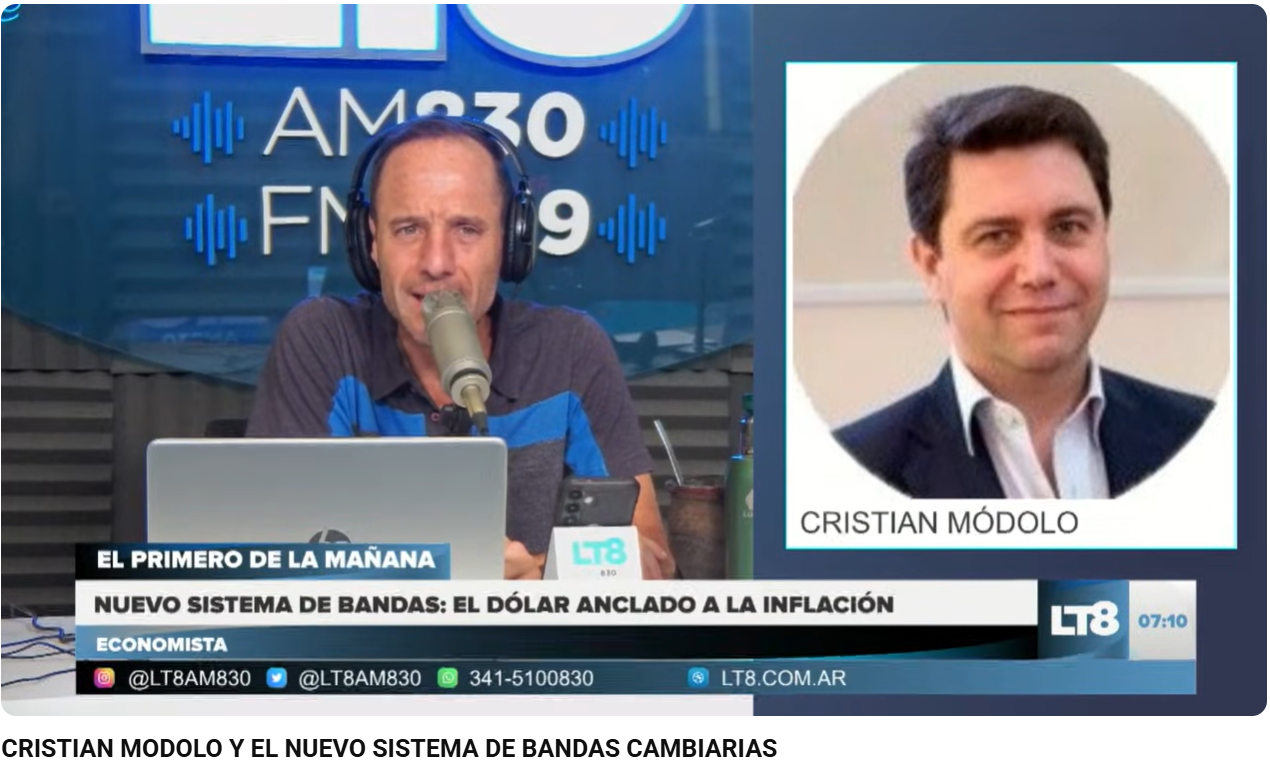 Desde el primer día de 2026 el piso y tope de las bandas no se ajustan ya al 1% mensual sino al ritmo de la inflación. El economista Cristian Módolo estima que subirá el dólar y que repercutirá parcialmente en la inflación anual por encima de lo estimado en el presupuesto aprobado por el Congreso