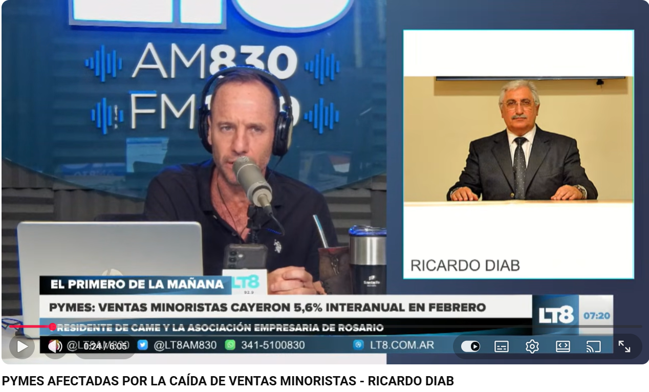 El presidente de la organización, Ricardo Diab, le confirmó a LT8 que la reducción interanual de los ingresos a nivel local no difiere demasiado del promedio general del 5,6 % negativo en el segundo mes del año. "Es muy difícil escapar en el contexto macroeconómico", comentó a la hora de la comparación.